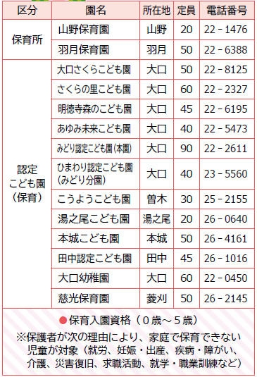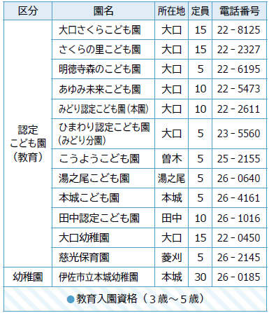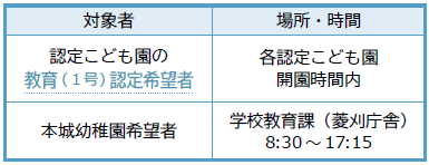 ※本城幼稚園の申込書は、学校教育課(菱刈庁舎)で配布します。