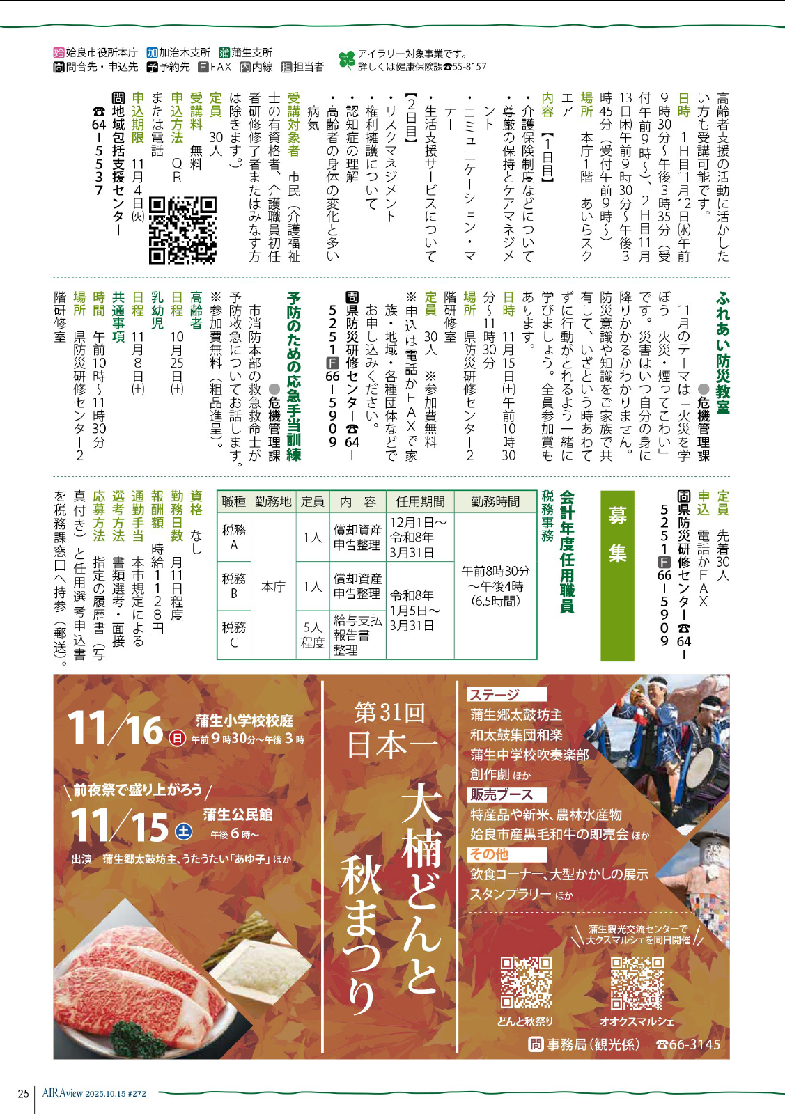 くらし 広報あいら「AIRAview」 令和7年10月15日 第272号 25面 24/34 前の記事 次の記事 発行日 : 2025年10月15日 自治体名 : 鹿児島県姶良市 広報紙名 : 広報あいら「AIRAview」 令和7年10月15日 第272号 Tweet シェアする 広報あいら「AIRAview」 令和7年10月15日 第272号 24面 広報あいら「AIRAview」 令和7年10月15日 第272号 26面