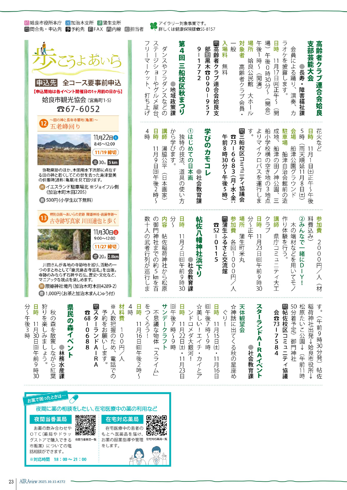 くらし 広報あいら「AIRAview」 令和7年10月15日 第272号 23面 22/34 前の記事 次の記事 発行日 : 2025年10月15日 自治体名 : 鹿児島県姶良市 広報紙名 : 広報あいら「AIRAview」 令和7年10月15日 第272号 Tweet シェアする 広報あいら「AIRAview」 令和7年10月15日 第272号 22面 広報あいら「AIRAview」 令和7年10月15日 第272号 24面