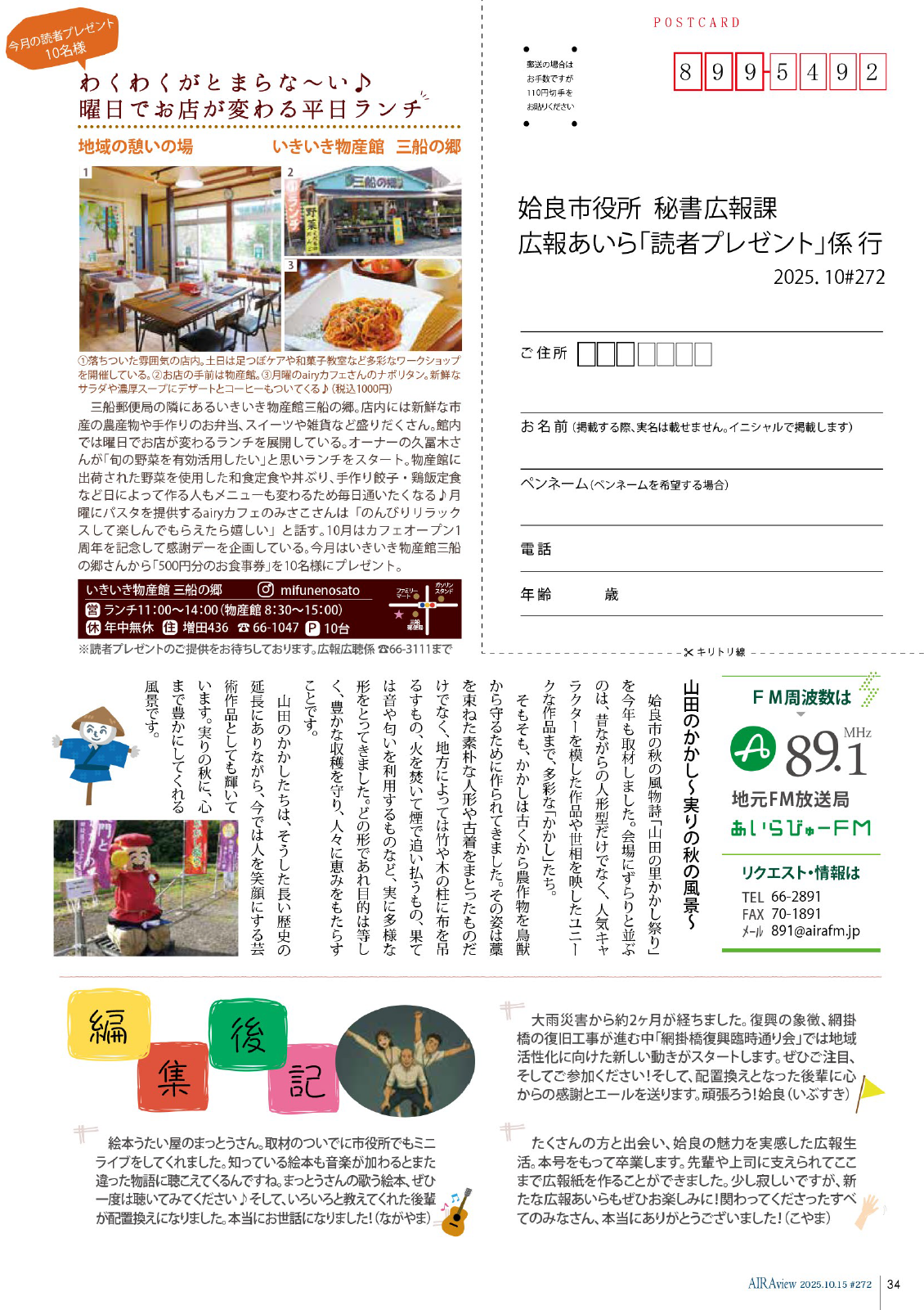 くらし 広報あいら「AIRAview」 令和7年10月15日 第272号 34面 33/34 前の記事 次の記事 発行日 : 2025年10月15日 自治体名 : 鹿児島県姶良市 広報紙名 : 広報あいら「AIRAview」 令和7年10月15日 第272号 Tweet シェアする 広報あいら「AIRAview」 令和7年10月15日 第272号 33面 広報あいら「AIRAview」 令和7年10月15日 第272号 35面