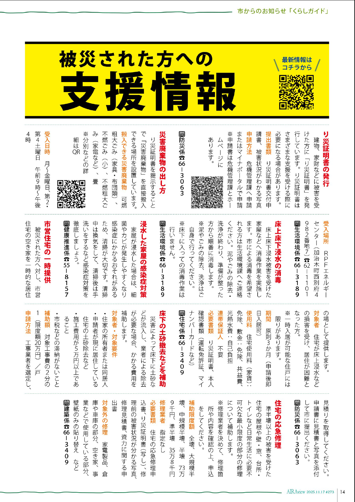 くらし 広報あいら「AIRAview」 令和7年11月17日 第273号 14面 14/35 前の記事 次の記事 発行日 : 2025年11月17日 自治体名 : 鹿児島県姶良市 広報紙名 : 広報あいら「AIRAview」 令和7年11月17日 第273号 Tweet シェアする 広報あいら「AIRAview」 令和7年11月17日 第273号 13面 広報あいら「AIRAview」 令和7年11月17日 第273号 15面