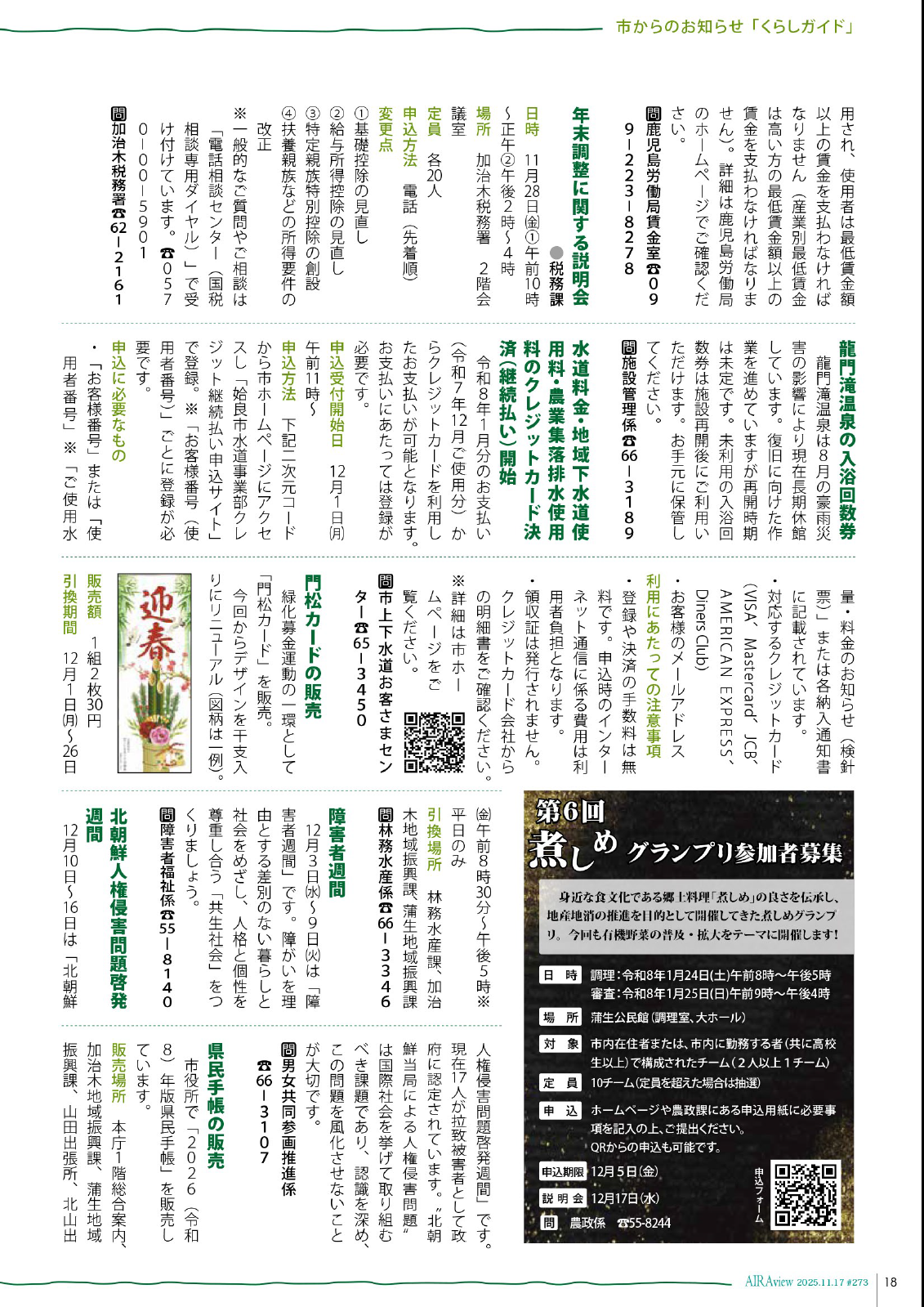 くらし 広報あいら「AIRAview」 令和7年11月17日 第273号 18面 18/35 前の記事 次の記事 発行日 : 2025年11月17日 自治体名 : 鹿児島県姶良市 広報紙名 : 広報あいら「AIRAview」 令和7年11月17日 第273号 Tweet シェアする 広報あいら「AIRAview」 令和7年11月17日 第273号 17面 広報あいら「AIRAview」 令和7年11月17日 第273号 19面