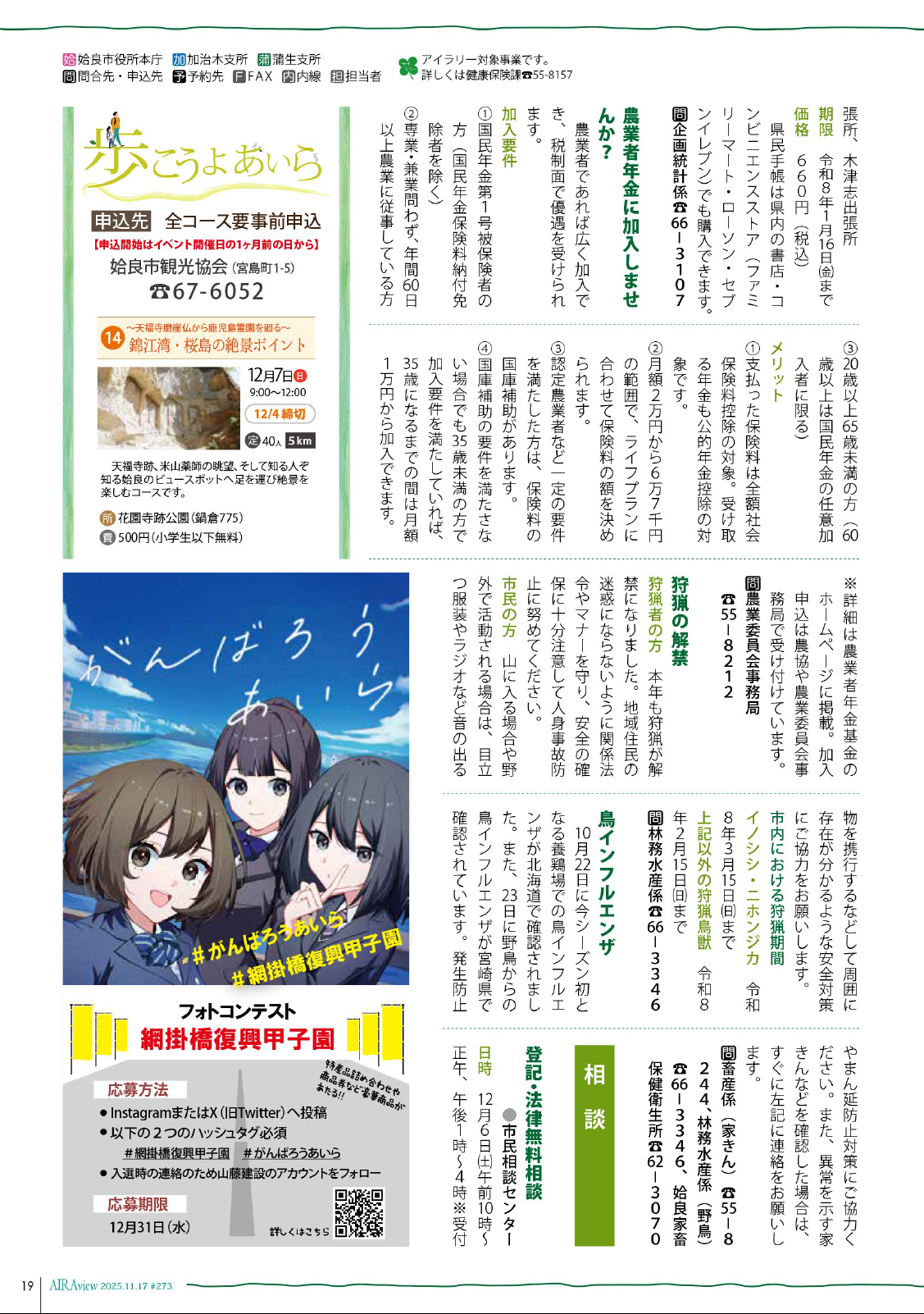 くらし 広報あいら「AIRAview」 令和7年11月17日 第273号 19面 19/35 前の記事 次の記事 発行日 : 2025年11月17日 自治体名 : 鹿児島県姶良市 広報紙名 : 広報あいら「AIRAview」 令和7年11月17日 第273号 Tweet シェアする 広報あいら「AIRAview」 令和7年11月17日 第273号 18面 広報あいら「AIRAview」 令和7年11月17日 第273号 20面