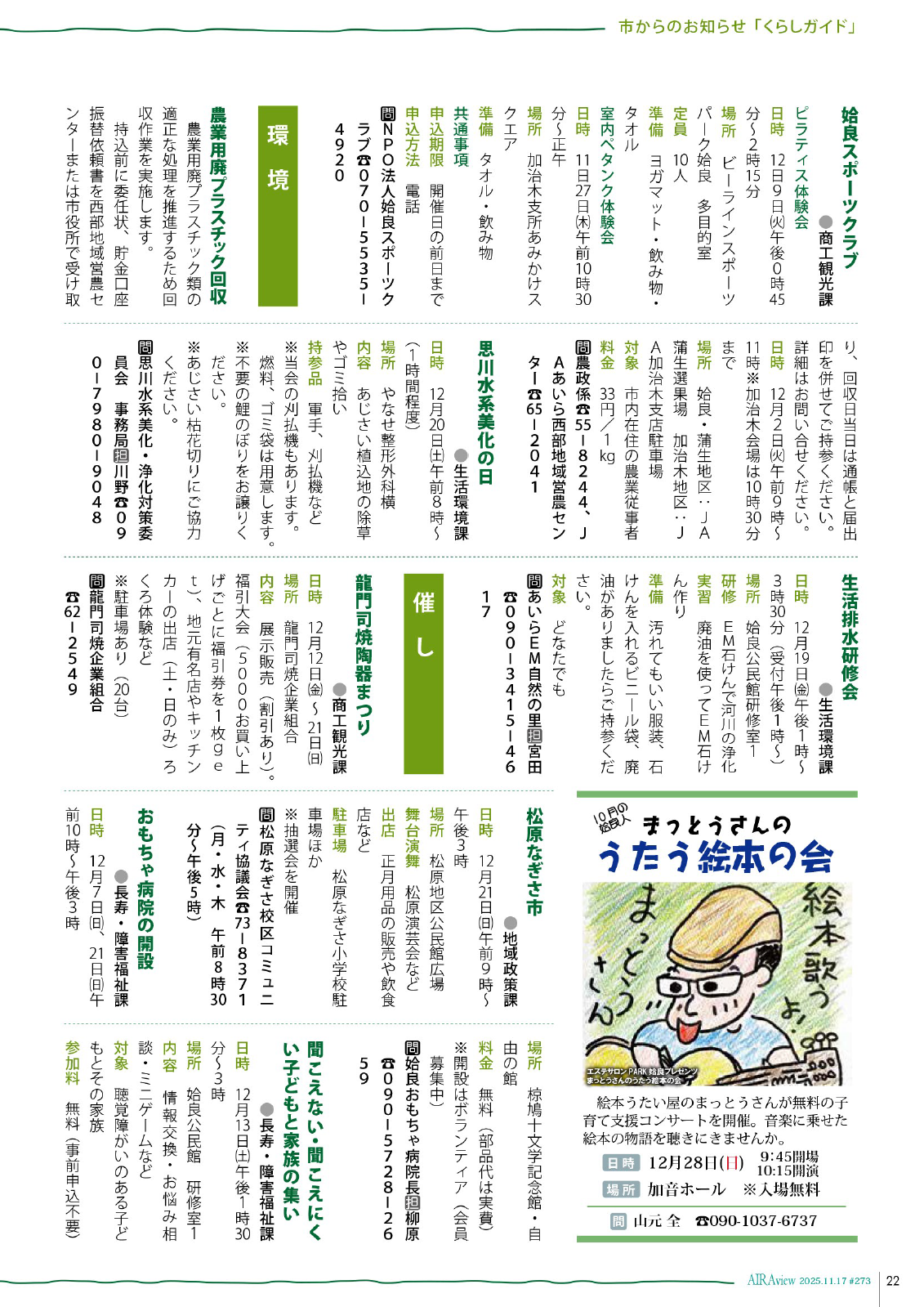 くらし 広報あいら「AIRAview」 令和7年11月17日 第273号 22面 22/35 前の記事 次の記事 発行日 : 2025年11月17日 自治体名 : 鹿児島県姶良市 広報紙名 : 広報あいら「AIRAview」 令和7年11月17日 第273号 Tweet シェアする 広報あいら「AIRAview」 令和7年11月17日 第273号 21面 広報あいら「AIRAview」 令和7年11月17日 第273号 23面