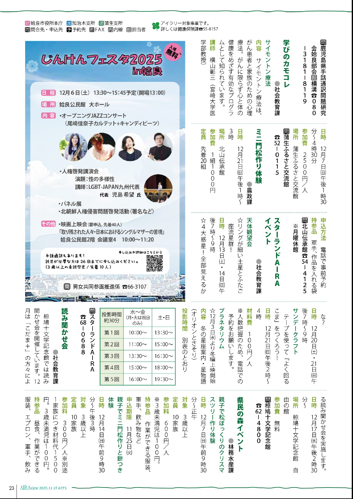 くらし 広報あいら「AIRAview」 令和7年11月17日 第273号 23面 23/35 前の記事 次の記事 発行日 : 2025年11月17日 自治体名 : 鹿児島県姶良市 広報紙名 : 広報あいら「AIRAview」 令和7年11月17日 第273号 Tweet シェアする 広報あいら「AIRAview」 令和7年11月17日 第273号 22面 広報あいら「AIRAview」 令和7年11月17日 第273号 24面