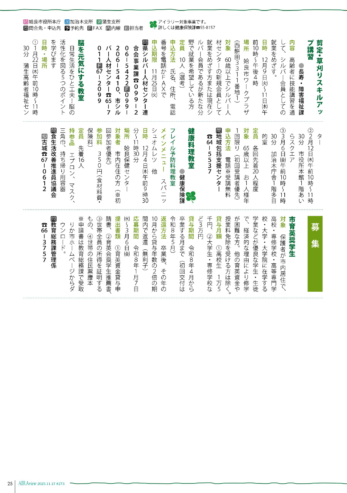 くらし 広報あいら「AIRAview」 令和7年11月17日 第273号 25面 25/35 前の記事 次の記事 発行日 : 2025年11月17日 自治体名 : 鹿児島県姶良市 広報紙名 : 広報あいら「AIRAview」 令和7年11月17日 第273号 Tweet シェアする 広報あいら「AIRAview」 令和7年11月17日 第273号 24面 広報あいら「AIRAview」 令和7年11月17日 第273号 26面