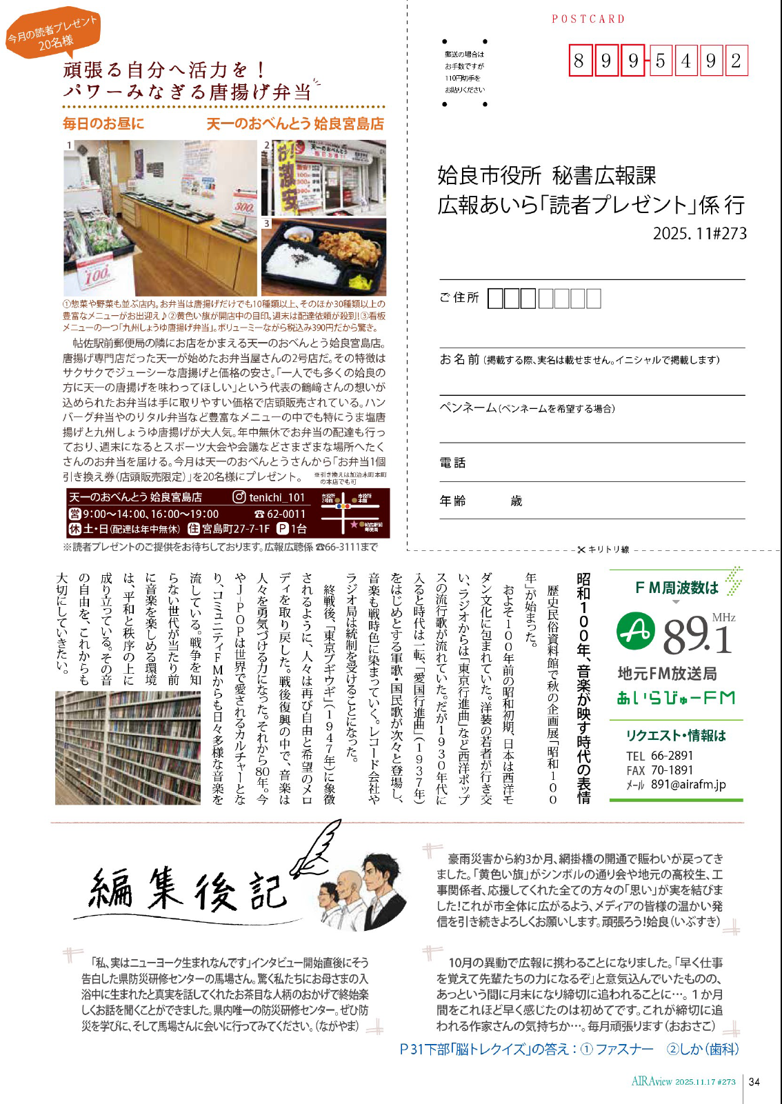 その他 広報あいら「AIRAview」 令和7年11月17日 第273号 34面 34/35 前の記事 次の記事 発行日 : 2025年11月17日 自治体名 : 鹿児島県姶良市 広報紙名 : 広報あいら「AIRAview」 令和7年11月17日 第273号 Tweet シェアする 広報あいら「AIRAview」 令和7年11月17日 第273号 33面 広報あいら「AIRAview」 令和7年11月17日 第273号 35面
