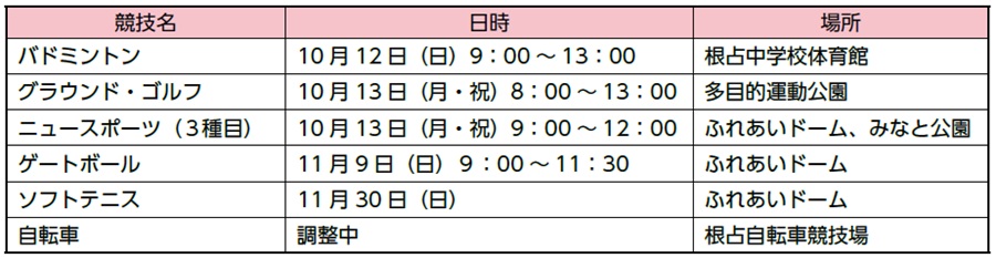※自転車競技の開催日時は調整中のため、決定次第、町広報紙にてお知らせします。
