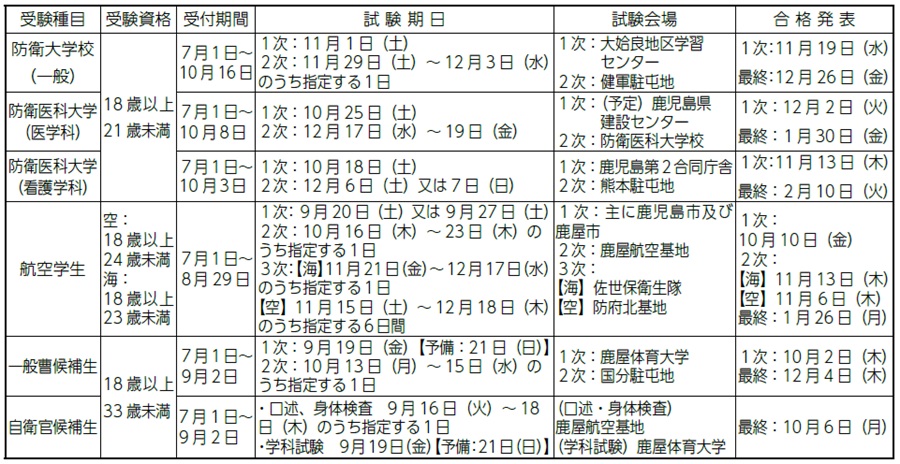 お問合せ先:自衛隊鹿児島地方協力本部 鹿屋地域事務所