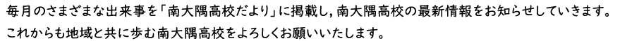 子育て 南大隅高校だより 9月号 2025年8月20日発行 16/20 前の記事 次の記事 発行日 : 2025年09月24日 自治体名 : 鹿児島県南大隅町 広報紙名 : 広報南大隅 令和7年9月号 Tweet シェアする 〔南大隅町地域おこし協力隊活動報告〕さいなんたん協力隊だよりVOL.100(令和7年9月) お知らせ