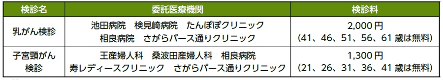 乳がん・子宮頸がん検診を次の医療機関で受診することができます。