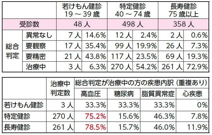 また、若い年代の方は要指導・要観察の割合が高く、生活習慣改善の必要性がある方の割合が高いことがわかります。