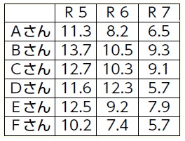 しかし個人をみてみると、令和5年度は10gを超えていた数値が令和7年度には5g台にまで下げている方もおり、お一人お一人少しずつではありますが、減塩に取り組まれ、効果が表れていました。