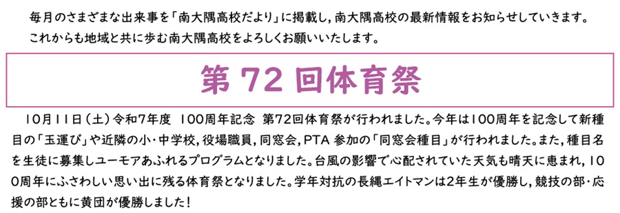 子育て 南大隅高校だより 11月号 2025年10月20日発行 21/26 前の記事 次の記事 発行日 : 2025年11月26日 自治体名 : 鹿児島県南大隅町 広報紙名 : 広報南大隅 令和7年11月号 ※詳しくは本紙をご覧ください。 Tweet シェアする さいなんたん協力隊だより VOL.102(令和7年11月) お知らせ