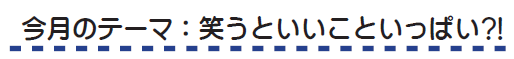 ⽇本には昔から『笑う⾨には福来る』ということわざもあります。笑うことでプラス思考になれて、痛みを和らげてくれる効果もあるそうです。⽇常⽣活に『笑い』をうまく取り⼊れて健康で楽しい⽇々を送りましょう。