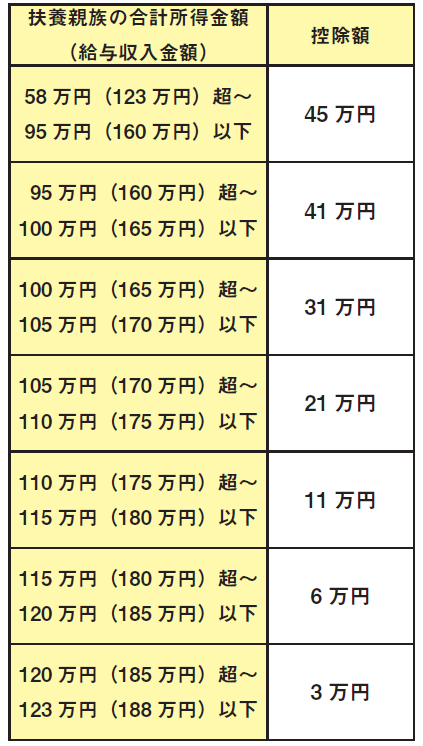扶養控除等の適⽤を受ける場合の所得要件が10万円引き上げられます。