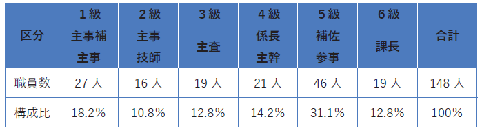 ※級別職員数の状況については、再任⽤、短期間勤務職員は除いています。数値は4⽉1⽇現在で、地⽅公務員給与実態調査にて報告したものです。