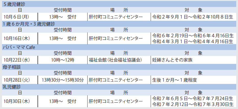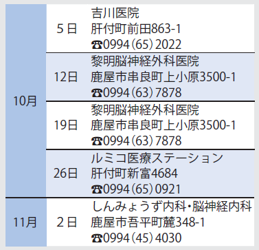 ■10月の相談・健診・日曜当番医など