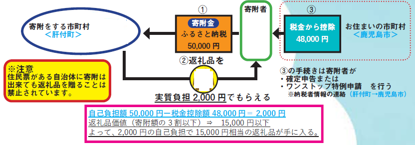 〈寄附者:鹿児島市在住 寄附額:50,000円の場合〉