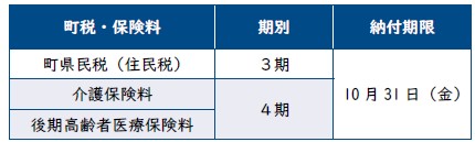 10月は下表の町税・保険料の納付期限となっています。