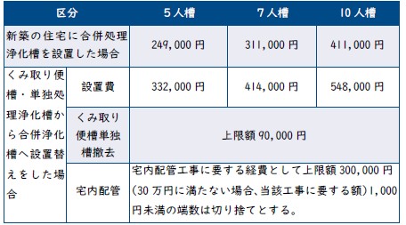 本町では、合併浄化槽を設置される方に対して補助金制度があります。
