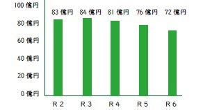 令和3年度末の地方債残高は84億135万円でしたが、地方債の新規発行の抑制等により3年間で約11億8,500万円の縮減が図られました。