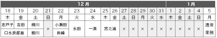 年末は、汲み取り依頼が集中しますので、各事業所の営業日程を確認のうえ、早めの予約をお願いします。