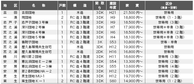 区分の「*単身」については、申込条件がありますので、建設課管理係へお問い合わせください。