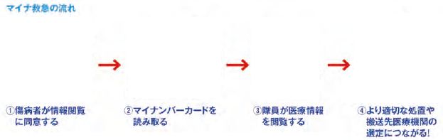 救急隊員が傷病者のマイナ保険証(健康保険証として利用登録したマイナンバーカード)を活用し、傷病者の医療情報等(病歴・処方歴・受診歴)を閲覧する仕組みのことです。