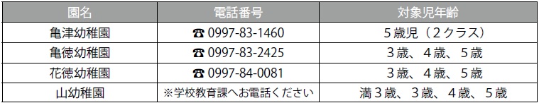 ・花徳幼稚園と山幼稚園については、希望者は預かり保育をします。(午後3時~午後5時)