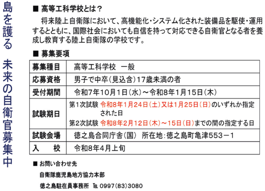 しごと 令和7年度 陸上自衛隊 高等工科学校生徒募集 16/20 前の記事 次の記事 発行日 : 2025年12月05日 自治体名 : 鹿児島県天城町 広報紙名 : 広報あまぎ 令和7年12月号 Tweet シェアする 放送大学で学ぼう 町民の動き