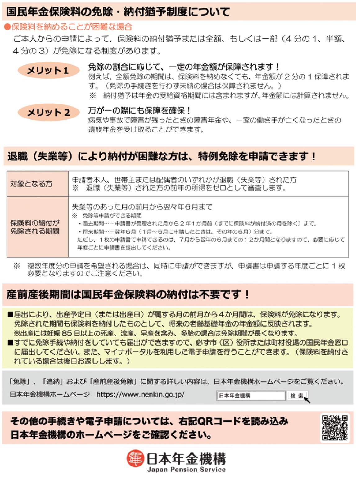 くらし 国民年金保険料の納付が困難な方へ 国民年金保険料の免除・納付猶予申請が可能です! 11/13 前の記事 次の記事 発行日 : 2025年10月01日 自治体名 : 鹿児島県伊仙町 広報紙名 : 広報いせん 令和7年10月号 Tweet シェアする 7月11日(金)徳之島交流ひろば ほーらい館無料体験会開催! 戸籍の窓