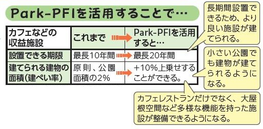 今号では、各公園のリニューアルポイントやPark-PFIの仕組みについて紹介します。