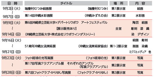 問合せ:那覇市民ギャラリー(パレットくもじ6F)