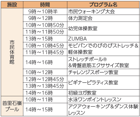 体力測定会・市民ウォーキング大会…市民スポーツ課【電話】917-3504