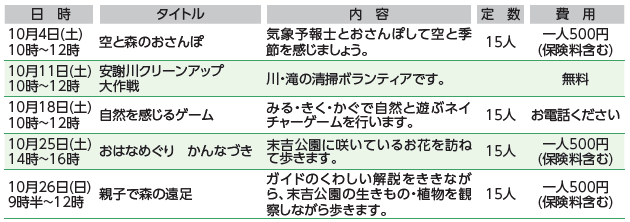 イベント 森の家みんみん 31/37 前の記事 次の記事 発行日 : 2025年10月01日 自治体名 : 沖縄県那覇市 広報紙名 : 広報なは市民の友 2025年10月号 各集合場所:森の家みんみん 利用時間:9時~18時 休館日:火曜日 問合せ:森の家みんみん(首里儀保町4-79-8) 【電話】882-3195【FAX】882-3196 Tweet シェアする パレット市民劇場 なは市民活動支援センター