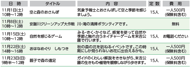 イベント 森の家みんみん 26/32 前の記事 次の記事 発行日 : 2025年11月01日 自治体名 : 沖縄県那覇市 広報紙名 : 広報なは市民の友 2025年11月号 各集合場所:森の家みんみん 利用時間:9時~18時 休館日:火曜日 問合せ:森の家みんみん(首里儀保町4-79-8) 【電話】882-3195【FAX】882-3196 Tweet シェアする なは女性センター なは市民活動支援センター