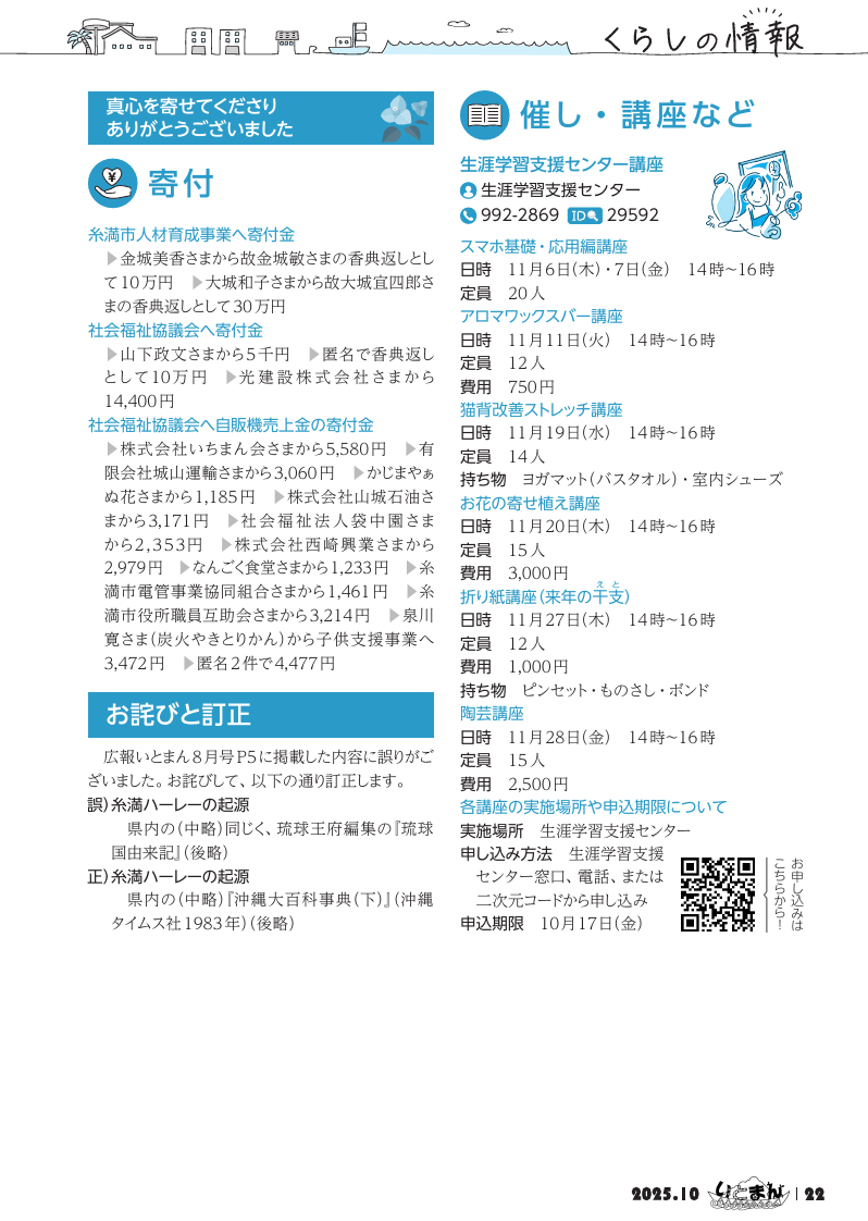 くらし 広報いとまん 2025年10月号 P.22 21/23 前の記事 次の記事 発行日 : 2025年10月01日 自治体名 : 沖縄県糸満市 広報紙名 : 広報いとまん 2025年10月号 Tweet シェアする 広報いとまん 2025年10月号 P.21 広報いとまん 2025年10月号 P.23