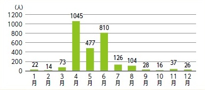 昭和20年における沖縄市の月別戦没者数のグラフを見てみると、米軍が上陸した4月は、上陸地に近い沖縄市では艦砲射撃による被害が大きかったことが考えられます。