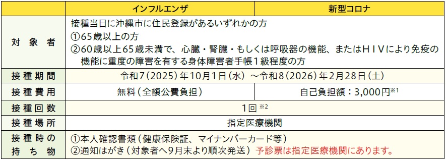 10月1日より下記の方を対象にインフルエンザおよび新型コロナワクチン定期予防接種が開始されます。