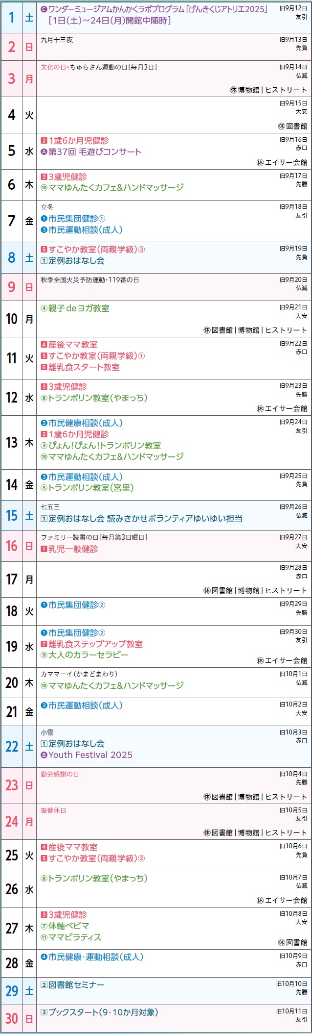 くらし 市民カレンダー 2025年11月(1) 14/35 前の記事 次の記事 発行日 : 2025年11月01日 自治体名 : 沖縄県沖縄市 広報紙名 : 広報おきなわ 2025年11月号 ※掲載情報(日時等)は変更になる場合があります。あらかじめご了承ください。 Tweet シェアする [おしらせ]第104号 きらめき KIRAMEKI 市民カレンダー 2025年11月(2)