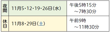 申込期間:11月4日(火)~11月18日(火) 午前9時から午後5時まで平日のみ