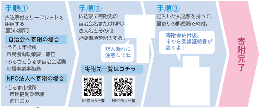 つまり、あなたが応援したい自治会やNPO法人に直接あなたの応援の気持ちを届けることができるのです!!そして、ご寄附いただきましたら、税申告の際、寄附金控除が適用されます!