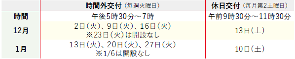 時間外、休日交付・申請窓口は右記の通りです
