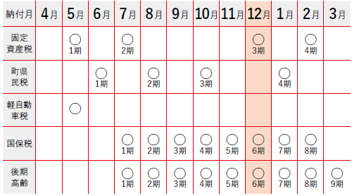 ■12月は固定資産税3期・国保税6期・後期高齢6期の納付月です
