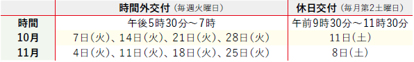 ■10月・11月のマイナンバーカード時間外窓口、休日窓口の開設について