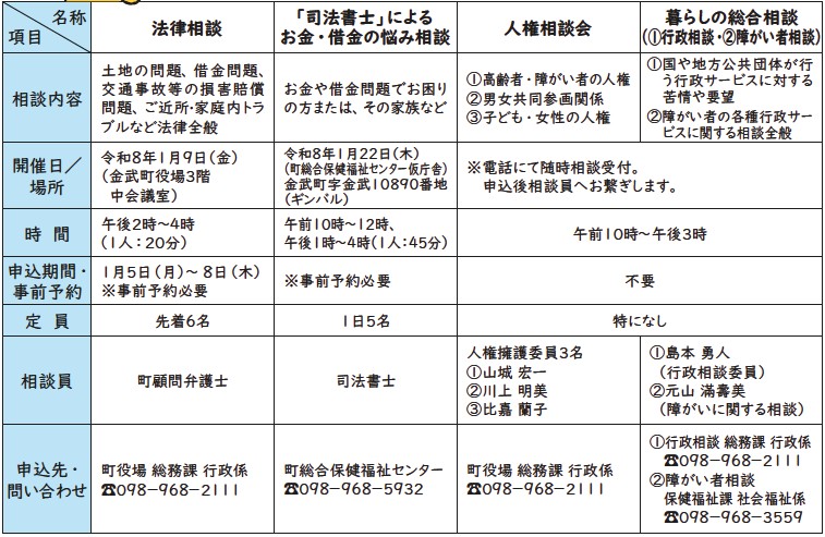 くらし お困りごとやお悩み、無料で相談できます 16/26 前の記事 次の記事 発行日 : 2026年01月01日 自治体名 : 沖縄県金武町 広報紙名 : 広報金武 2026年1月号 Tweet シェアする 金武町けんこうニュース Vol.139 『休日』でもマイナンバーカードが受け取れます