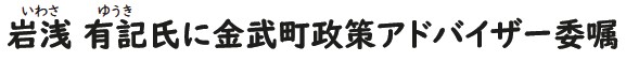 金武町政策アドバイザー委嘱状交付式が金武町役場で行われ、岩浅 有記氏に金武町政策アドバイザーを委嘱しました。