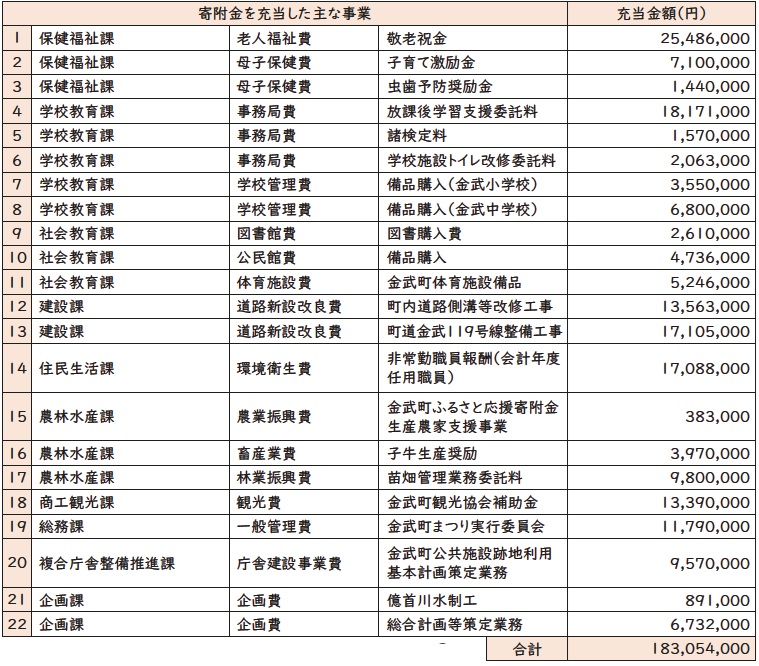 金武町ふるさと応援寄附金条例第10条の規定により、次のとおり運用状況を公表します。