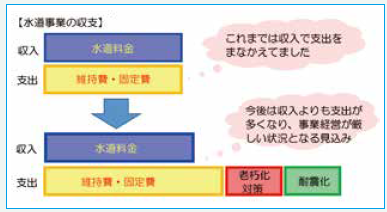 みなさんに水を安定的に供給していくために、また、健全で安定した経営を継続して行うためには、本町においても水道料金の改定が必要となっています。